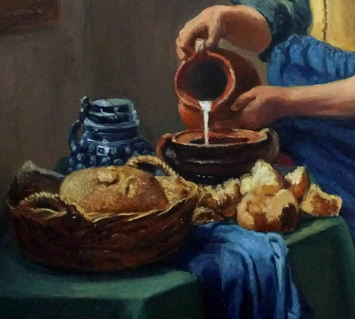 The Vermeer which was begun months ago is finished as well, I blogged about it before here. The final painting and some detail shots are below.